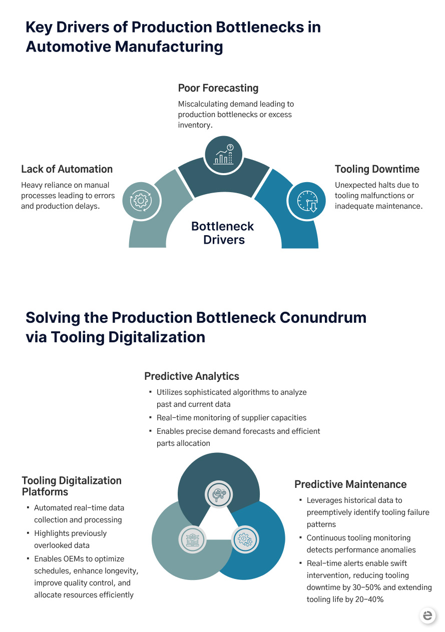 One truth remains clear: the automotive industry is always on the move. While this dynamism is exhilarating, it brings its own set of challenges, notably the infamous production bottlenecks. These have been accentuated by factors ranging from lack of automation to equipment downtime. Recent global events, such as the Covid-19 pandemic and the volatility of raw material and energy costs, further exacerbate these challenges. Amid these challenges, the untapped potential of outsourced tooling data emerges as a silver lining. By tapping into this data and leveraging analytics, managers can identify issues earlier and refine their production processes, paving the way for more efficient manufacturing operations.